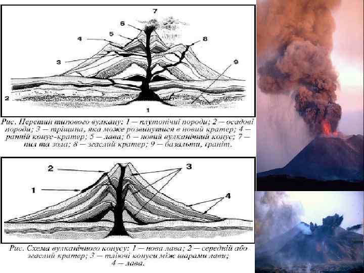 Основною причиною виверження вулкана є тиск газів у магмі. Вулкани поділяють на: 1. Діючі (виверження чи прояви діяльності мали місце за останні 3500 років). 2. Потенційнодіючі (виверження 3500— 13500 років тому). 3. Умовно згаслі (зберегли свої зовнішні форми). 4. Згаслі