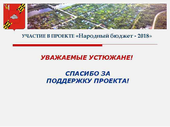 УЧАСТИЕ В ПРОЕКТЕ «Народный бюджет - 2018» УВАЖАЕМЫЕ УСТЮЖАНЕ! СПАСИБО ЗА ПОДДЕРЖКУ ПРОЕКТА!
