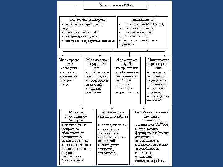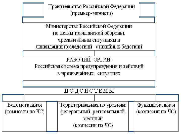 Вопрос 2. Организация единой государственной системы предупреждения и ликвидации чрезвычайных ситуаций, задачи, принципы построения, состав сил и средств Основная цель Единой государственной системы предупреждения и ликвидации чрезвычайных ситуаций (РСЧС) – объединение усилий федеральных органов исполнительной власти, органов представительной и исполнительной власти субъектов Российской Федерации, органов местного самоуправления и организаций, их сил и средств в области предупреждения и ликвидации чрезвычайных ситуаций природного и техногенного характера, защиты от них населения и территорий в мирное время.
