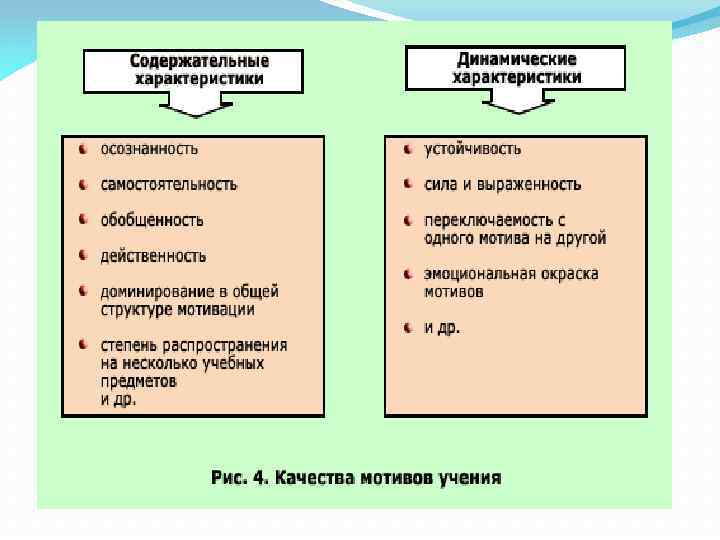 В зарубежной и российской психологии около 50 теорий мотиваций. психологические В качестве мотива назывались самые различные феномены, такие, как: намерения, представления, идеи, чувства, переживания (Л. И. Божович); потребности, влечения, побуждения, склонности (X. Хекхаузен); желания, хотения, привычки, мысли, чувство долга (П. А. Рудик); морально-политические установки и помыслы (Г. А. Ковалев); психические процессы, состояния и свойства личности (К. К. Платонов); предметы внешнего мира (А. Н. Леонтьев); установки (А. Маслоу); условия существования (К. Вилюнас); побуждения, от которых зависит целенаправленный характер действий (В. С. Мерлин); соображение, по которому субъект должен действовать (Ж. Годфруа).