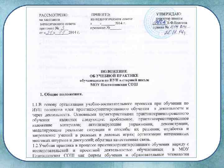 Результат Образовательные задачи профильный углубление теоретических знаний по теме; приобретение практических навыков; приобретение навыков работы с информационными источниками по теме. Развитие общеучебных умений: самоорганизация, самоконтроль, самооценка, самокоррекция. Формирование навыков представления своей деятельности. самостоятельная работа учащихся ориентированная на результат, на конкретный продукт. выбор профессиональные пробы (ОАО Платошинская птицефабрика, помощник системного администратора); курсы при ПГНИУ; 2 ученика ЕГЭ по информатике; ПГНИУ, ПГСХА, программист. Погружения предмет. в Самоопределение, профессии Итоги учебной практики представление информации (оформление текстового документа, мультимедийной презентации); защита учебной практики; распространение опыта (мастер-классы).