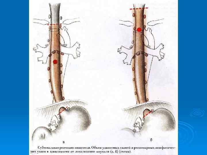 9 сегментов пищевода: Ø Трахеальный (надаортальный) (8 -9 см от устья пищевода до дуги аорты. Ø Аортальный (длиной 2, 5 -3 см). Ø Бронхиальный сегмент (на уровне бифуркации трахеи). Ø Аортально-бронхиальный сегмент (излишне). Ø Подбронхиальный сегмент. Ø Ретроперикардиальный. Ø Наддиафрагмальный. Ø Внутридиафрагмальный (2 см). Ø Брюшной сегмент.