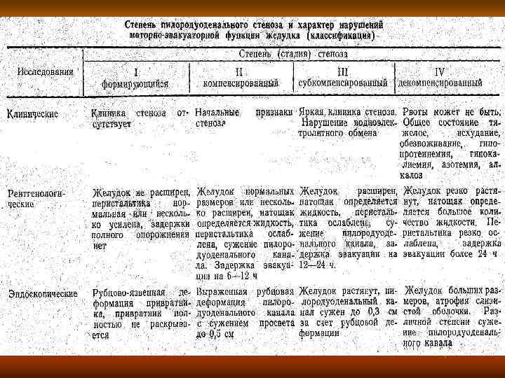 В выборе метода оперативного вмешательства при пилородуоденальном стенозе следует учитывать: 1 – стадию развития стеноза; 2 - степень нарушений моторной функции желудка и 12 перстной кишки; 3 – особенности желудочной секреции; 4 – степень операционного риска.