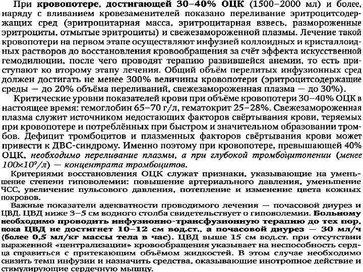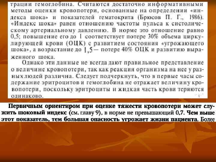 Степень тяжести кровопотери (Горбашко А. И. , 1982)