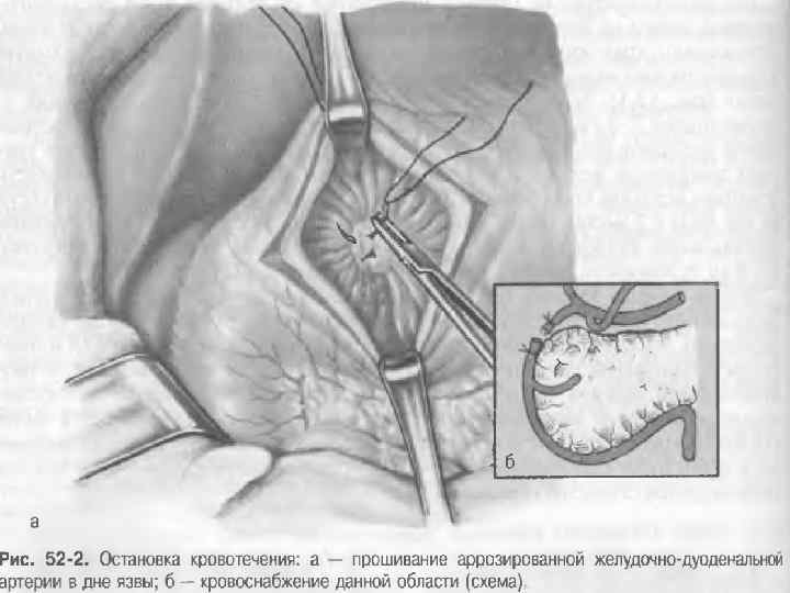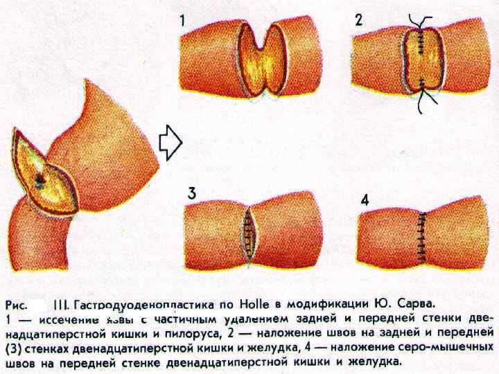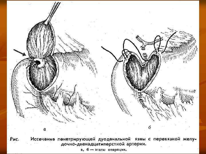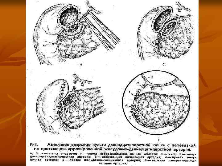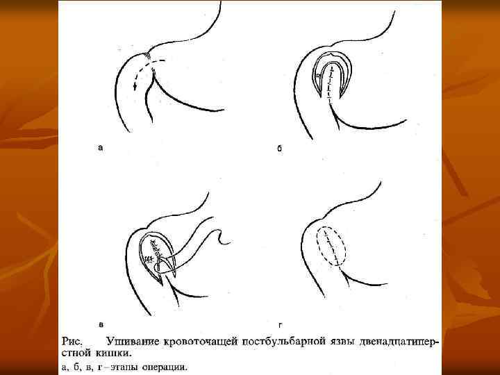 Рис. Ушивание кровоточащей язвы двенадцатиперстной кишки