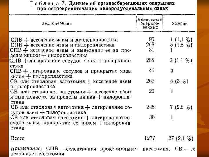 - В структуре летальных исходов доминируют те, которые произошли из-за рецидива язвенного кровотечения. -Доля больных с рецидивом ОГДЯК среди всех умерших от гастродуоденального кровотеченния составляет 60 -80%. - Следует признать, что сегодня ещё не выработано единого тактического подхода в ведении этих пациентов.