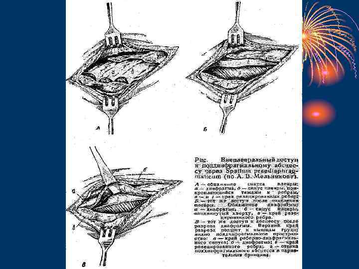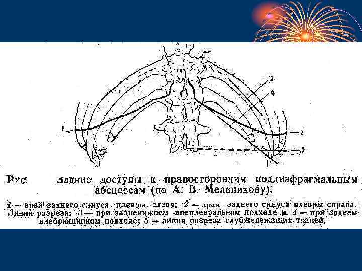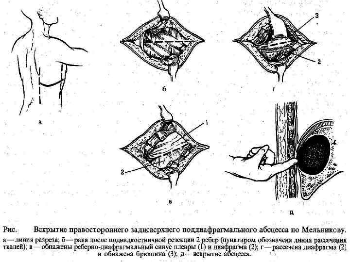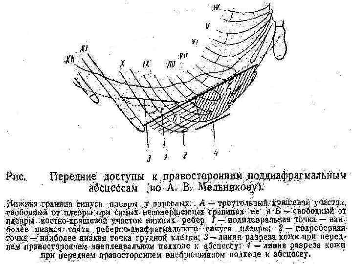 Рис. Подрёберный подход к вскрытию поддиафрагмального абсцесса