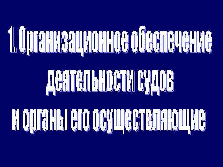Учебные вопросы: 1. Организационное обеспечение деятельности судов и органы его осуществляющие. 2. Судебный департамент при Верховном Суде РФ. 3. Министерство юстиции РФ: основные задачи и органы их осуществляющие. самостоятельно 4. Федеральная служба судебных приставов РФ.