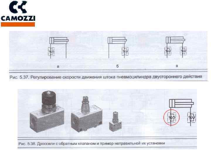 РЕГУЛИРОВАНИЕ СКОРОСТИ ДВИЖЕНИЯ ПНЕВМАТИЧЕСКИЙ ДРОССЕЛЬ С ОБРАТНЫМ КЛАПАНОМ Регулируемый пневмодроссель
