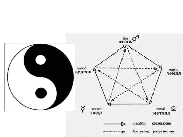 «У-син» Работа с энергиями Неба и Земли схематично выражается движением энергий «Великого предела» - Инь и Ян и взаимодействием пяти первоэлементов, связанных в единое понятие «у-син» (движение пяти), по аналогии с которым выстраиваются все известные нам системы миропонимания в Китае: медицинская, архитектурная, музыкальная, государственная и т. д.