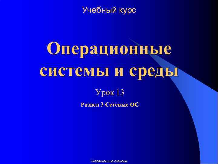Учебный курс Операционные системы и среды Урок 13 Раздел 3 Сетевые ОС Операционные системы