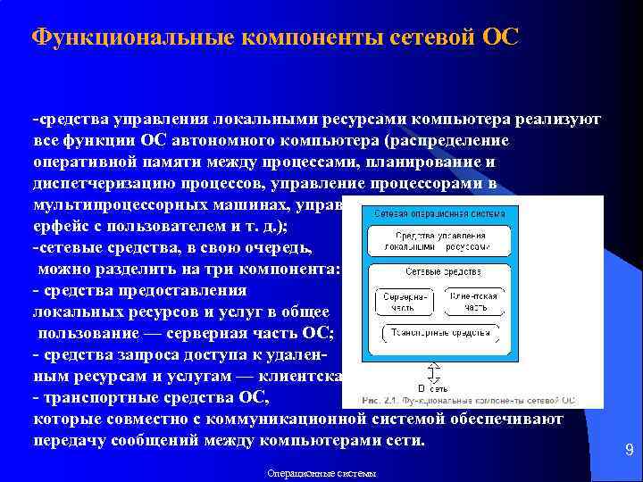 Таким образом, термин «сетевая операционная система» используется в двух значениях: 1. во-первых, как совокупность ОС всех компьютеров сети и, 2. во-вторых, как операционная система отдельного компьютера, способного работать в сети. Исходя из этого определения следует, что такие операционные системы, как, например, Windows NT, Net. Ware, Solaris, HP-UX, являются сетевыми, поскольку все они обладают средствами, которые позволяют их пользователям работать в сети. 8 Операционные системы