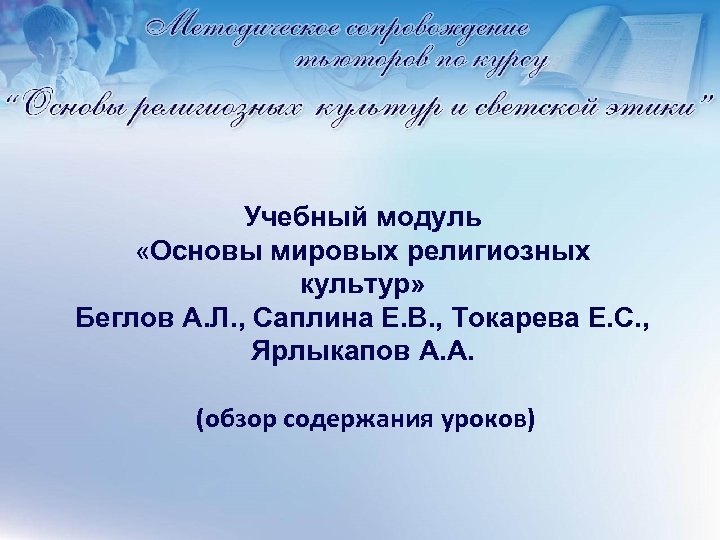 Учебный модуль «Основы мировых религиозных культур» Беглов А. Л. , Саплина Е. В. , Токарева Е. С. , Ярлыкапов А. А. (обзор содержания уроков)