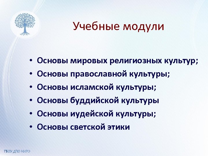 Учебные модули • • • Основы мировых религиозных культур; Основы православной культуры; Основы исламской культуры; Основы буддийской культуры Основы иудейской культуры; Основы светской этики