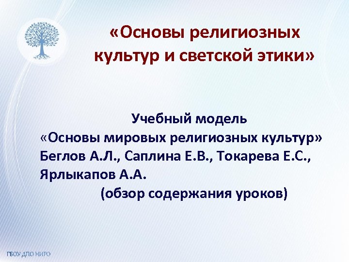 «Основы религиозных культур и светской этики» Учебный модель «Основы мировых религиозных культур» Беглов А. Л. , Саплина Е. В. , Токарева Е. С. , Ярлыкапов А. А. (обзор содержания уроков)