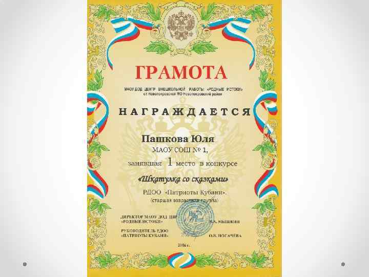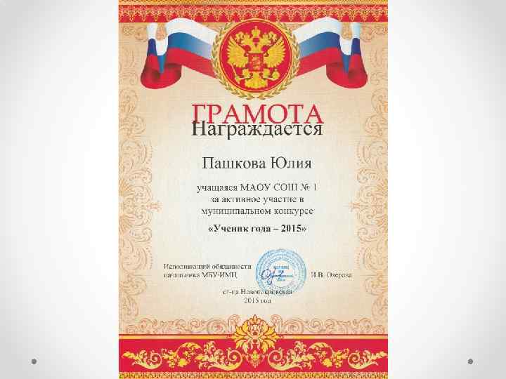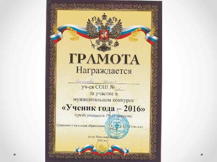 Моей первой серьезной победой стал аттестат особого отличия и успешно сданные экзамены. Следующая моя цель – это золотая медаль и высокие баллы на ЕГЭ. • В 2007 году я пошла в 1 класс в МАОУ СОШ № 1. И с самого 1 сентября 2007 года это место стало мне вторым домом, а педагоги школы – второй семьей. • Моя первая учительница, Долгих Светлана Васильевна, привила мне такие качества, как усидчивость, внимательность и ответственность. Именно она вложила в меня любовь к учебе, которая не покидает меня на протяжении всего процесса обучения.