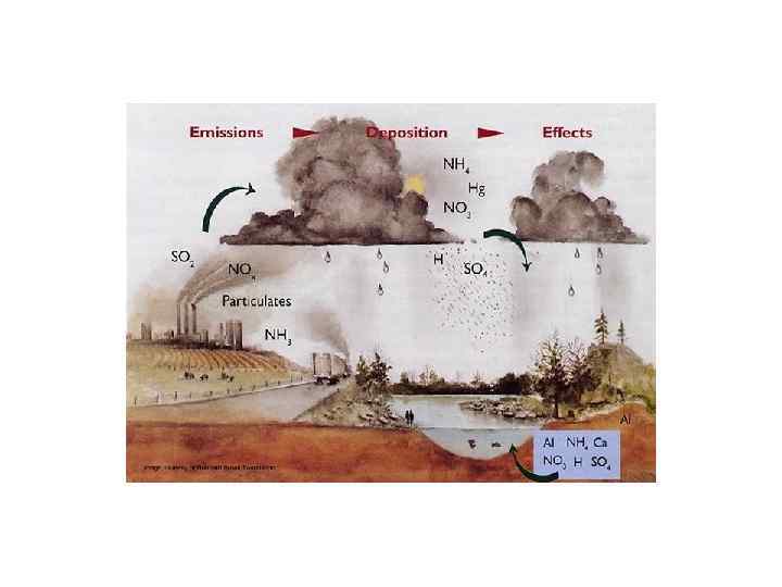 Кислотные дожди Кислотный дождь — дождь или снег, подкисленный до р. Н < 5, 6 из-за растворения в атмосферной влаге антропогенных выбросов (оксиды серы, оксиды азота, хлороводород, сероводород и др. ).