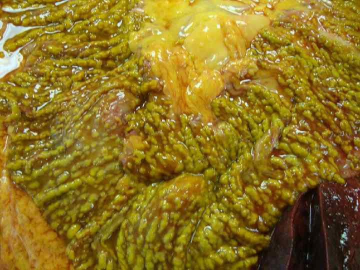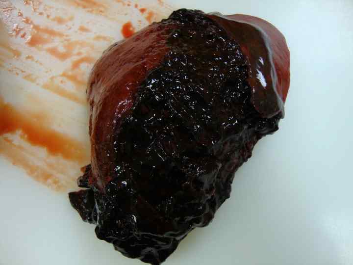 ПАТОЛОГОАНАТОМИЧЕСКИЙ ДИАГНОЗ: ОСНОВНОЕ ЗАБОЛЕВАНИЕ (конкурирующие) ХРБС: порок с преимущественным поражением АК , площадь отверстия АК 0, 5 кв. см. и МК, миокардитический кардиосклероз, гипертрофия сердца (масса 604 г, толщина стенки ЛЖ-1, 8 см, ПЖ-0, 8 см, МЖП-1, 3 см). ЖКБ: хронический холецистит с обострением по типу флегмонозно-язвенного, массивные спайки вокруг желчного пузыря, хронический гнойный холангит, холангиолит, вторичный (биллиарный) цирроз активная фаза (некрозы гепатоцитов, нейтрофильная инфильтрация, билирубин 67, 9 — 83, 75 ммоль/л). ОСЛОЖНЕНИЯ Хроническая сердечная недостаточность: дилатация полостей, бурая индурация легких, венозное полнокровие внутренних органов, гидроторакс (по 400 мл), портальная гипертензия: асцит 3000 мл, варикозное расширение вен пищевода, кардиального отдела желудка, геморроидальных, анемия, Нв 100 г/л СОПУТСТВУЮЩИЕ ЗАБОЛЕВАНИЯ Тучность (рост, вес - информация отсутствует). Сахарный диабет (клинически). Агенезия селезенки. ИБС: атеросклероз коронарных артерий 2 ст 1 Уст, мелкоочаговый кардиосклероз