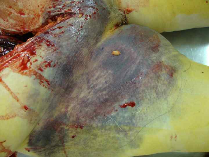 47 5916 М, 74 Хир. Ранение уретры, простаты при эпицистостомии 2 48 6046 Ж, 72 Реан. Прорезывание швов ПП после непрямого 2 массажа сердца, кровотечение 50 6174 Ж, 77 Реан. Обширная гематома шеи, груди с падением НВ (68 г/л) 2 51 6089 М, 63 Хир. Повреждение подвздошной артерии при установке ВАБКП, массивное кровоизлияние 2 54 6707 Ж, 86 Хир. Обширное кровоизлияние в ткани бедра с 2 падением НВ (55 г/л) 58 7031 М, 71 Реан. Ранение стенки ПЖ при непрямом массаже, кровопотеря (6450+1500+1000 мл) 2