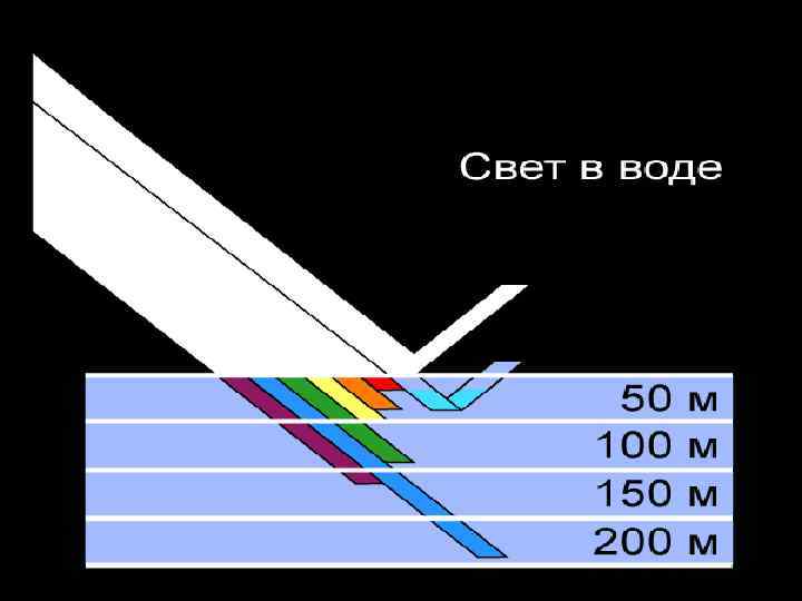 Рассеяние света • Происходит как в самой водной массе, так и под влиянием взвешенных в ней частиц. Чем длиннее волна, тем она меньше рассеивается; поглощаются же, наоборот, сильнее длинные волны и слабее короткие.