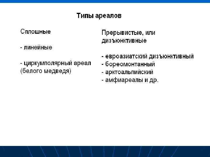 Учение об ареале n Ареал – область распространения, часть земной поверхности, в пределах которой распространен и проходит полный цикл своего развития данный таксон.