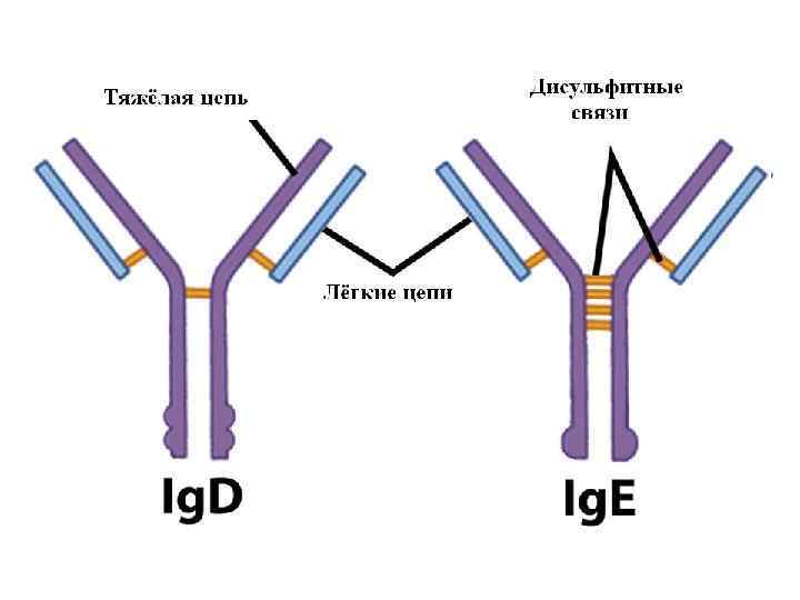 Ig. E- реагины играют основную патогенетичную роль в аллергических реакциях немедленного типа. Ig E синтезируются в коже, лимфоидной ткани дыхательных путей и кишечника. По своей структуре они несколько отличаются от Ig. G. У Ig. E на один домен больше (СН 4). Это свойство обусловливает особенности биологической функции Ig. E – способность адсорбироваться на базофилах и тучных клетках при помощи домена СН 4 Fc - фрагмента.