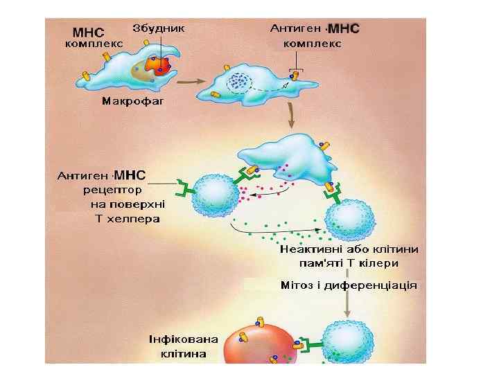 Главный комплекс гистосовместимости (ГКГ) – это система генов, которая контролирует синтез антигенов, которые определяют несовместимость тканей при пересадках и индуцируют реакции отторжения трансплантатов. КЛАС ГКГ ГЕНИ ПРОДУКТИ ГЕНІВ II DP DS HLA-DP HLA-DS І III DQ HLA-DQ DR C 2 HLA-DR C 2 FB FB C 4 HSP 70 C 4 Білки теплового шоку B HLA-B C HLA-C A HLA-A Молекулы класов Главного комплекса гистосовместимости распознаются Т клеточными рецепторами (ТКР) Т клеток. ТКР узнают пептиды (антигены) связанные с молекулами ГКГ, расположенными на поверхности клеток. Существует два класса таких молекул ГКГ: класс І ГКГ и класс ІІ ГКГ