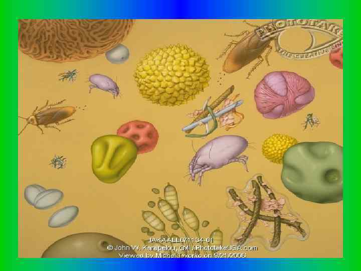 К бытовым аллергенам относятся: аллергены домашней и библиотечной пыли, аллергены из пуха подушки и клещевые аллергены. Эпидермальные аллергены – аллергены из шерсти собак, кошек, кроликов, гвинейских свинок, лупы коней, волоса человека. Группа пищевых аллергенов тоже многосчисленная и многообразная: аллергены куриного яйца, коровьего молока, аллергены из рыб, круп, мяса, цитрусовых Среди инфекционных аллергенов различают: бактериальные (стафилококка, стрептококка, кишечной палочки, коринебактеий, протея, пневмококка), грибковые (кандиды, аспергилловых грибков, мукора, ризопуса), вирусные (аденовирусные, герпетические, гриппозные. ).