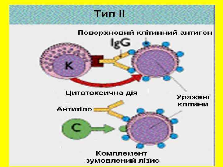 Реакции второго типа (цитотоксические). Эти реакции наблюдаются при переливании употреблении разных лекарственных средств. крови и Изоиммунные реакции при переливании крови: а) при переливании группонесовместимой крови изогемагглютинины обуславливают склеивание введенных эритроцитов, что приводит к их лизису; б) гемолитическая болезнь новорожденных при резус конфликте.