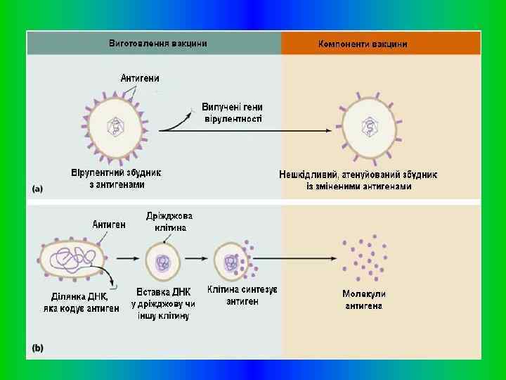 РЕКОМБИНАНТНЫЕ ВАКЦИНЫ Искусственное копирование антигенов и детерминант методами генной инженерии может способствовать созданию вакцин без балластных примесей. Для получения антигенов с необходимыми детерминантами без посторонних субстанций существует два направления: 1) выделение высокоочищенного антигена с естественного материала методами биохимии препарата или генной инженерии; 2) химический синтез антигенных детерминант. Как правило, виделяют или конструируют протективные антигены, адгезины, ферменты, протеины оболочки, токсины. Основой таких рекомбинантных вакцин является перенос в плазмиды или вирус гена, ответственного за продукцию необходимого антигена. Такие препараты разделяют на генноинженерные вакцины из антигенов, синтезированных в рекомбинантных бактериальных системах и дрожжах; векторные генно- инженерные живые вакцины на основе вируса осповакцины и другие.