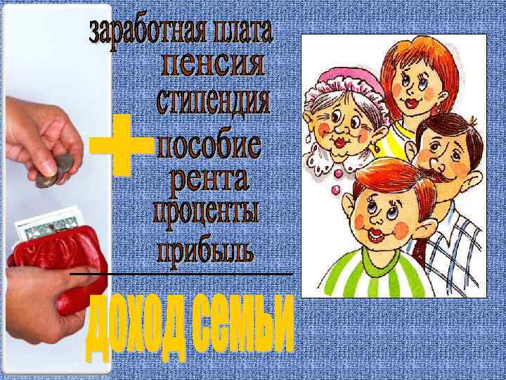Семейный бюджет Доходы зарплата пенсия стипендия пособие процент рента прибыль Расходы