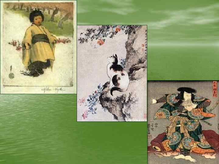 В Японии также очень процветает такой вид искусства как составление ИКЭБАНА. Цель « икебана – выражать красоту предметов. Это и средство самовыражения. Даже используя одни и те же материалы, разные люди могут вложить в них разные настроения. Мастер изображения предлагает вам посмотреть и определить какое настроение выражено в этих икэбанах