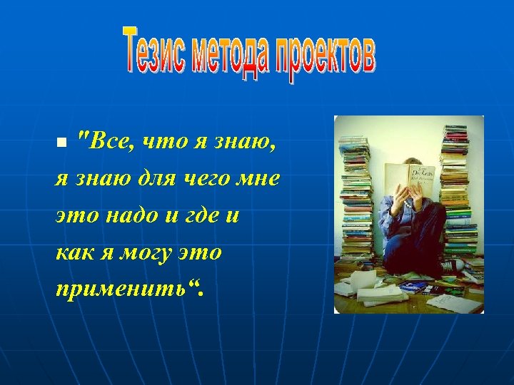 "Все, что я знаю, я знаю для чего мне это надо и где и как я могу это применить“. n