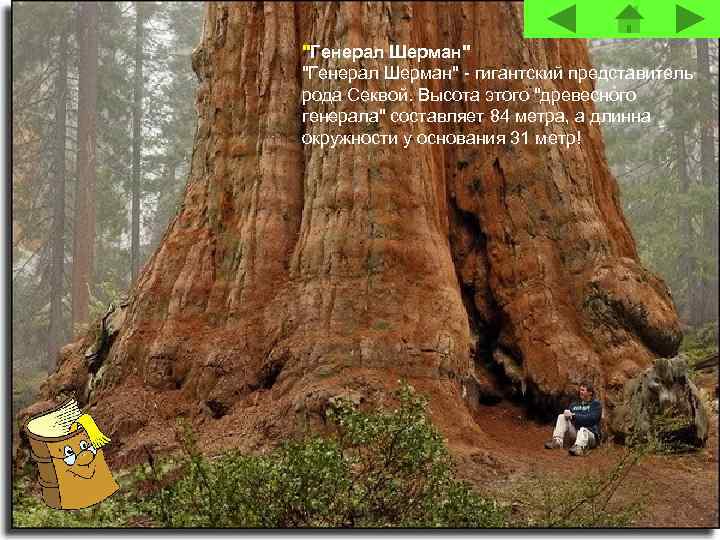 "Генерал Шерман" - гигантский представитель рода Секвой. Высота этого "древесного генерала" составляет 84 метра, а длинна окружности у основания 31 метр!