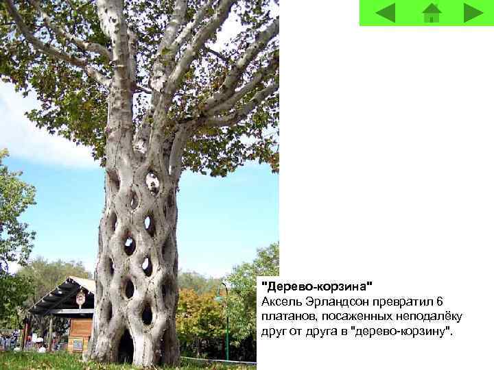 "Дерево-корзина" Аксель Эрландсон превратил 6 платанов, посаженных неподалёку друг от друга в "дерево-корзину".