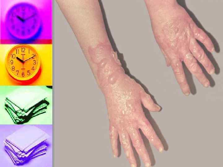 Патологическое действие УФ-излучения: n фотоаллергия: при высоким содержанием порфиринов в крови вследствие нарушения превращения гемоглобина (например, при гематопорфирии) на солнце могут возникнуть ожоги и состояние тяжелой интоксикации токсическими продуктами облученных порфиринов.
