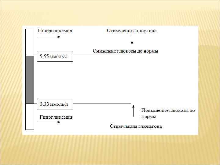 Гормон Место продукции и высвобождения Высвобождается в ответ на Основные эффекты в отношении уровня сахара в крови Инсулин Поджелудочная железа Повышенный уровень глюкозы Понижает Глюкагон Поджелудочная железа Пониженный уровень глюкозы Повышает Кортизол Надпочечники(кора) Пониженный уровень глюкозы/ Стресс Повышает Гормон роста Передняя доля гипофиза Пониженный уровень глюкозы/ Стресс Повышает Адреналин Надпочечники Стресс (мозговое вещество) Депо запасания глюкозы в виде гликогена: печеночные клетки, мышечные и клетки жировой ткани. Гликоген откладывается в виде гранул в цитоплазме. Повышает