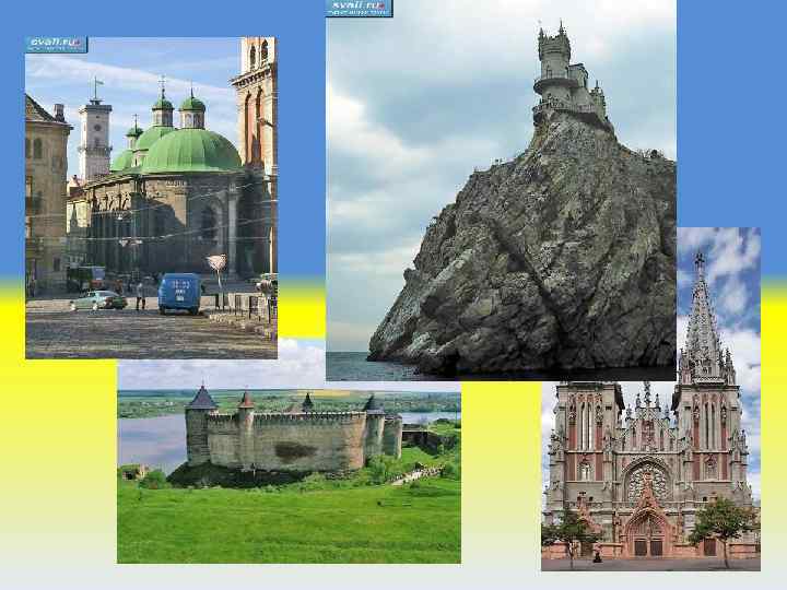 Административное деление Украина делится на 24 области, 2 города центрального подчинения и территориальная автономия — Автономная Республика Крым. Крупнейшие города • Киев - историческая столица Киевской Руси и современной Украины на реке Днепр, "мать городов русских". Старинные соборы и монастыри, широкие бульвары, красивые виды и разнообразие культурных заведений. • Львов - средневековый "старый город" и уникальная архитектура с польскими и немецкими элементами. • Одесса - порт на Чёрном море, множество пляжей и уникальная смесь различных культур. • Ялта - оздоровительный курорт на Южном берегу Крыма. • Севастополь - порт на Черном море. • Чернигов - старинный город с множеством памятников древнерусской архитектуры.