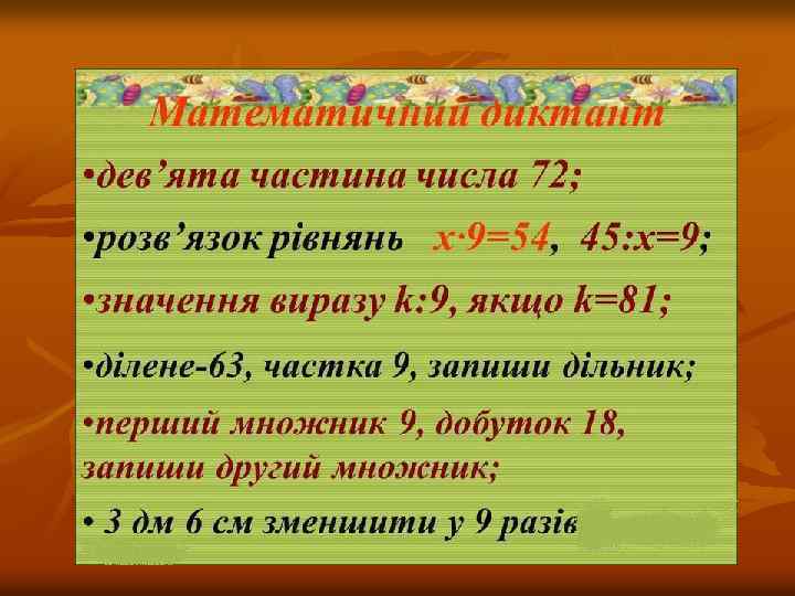 n n n n n Гра «Шифрувальники» У кожному рядку знайти «зайву» літеру. Скласти всі «зайві» літери з кожного рядка і прочитати назву твору. ООООЯООООО ВВВБВВВВВВВВВ ИИИИЛИИИИИИИИ ДУДДДДДДДДДД ТТТТКТТТТТТТТТТ АОООООООООО яблука