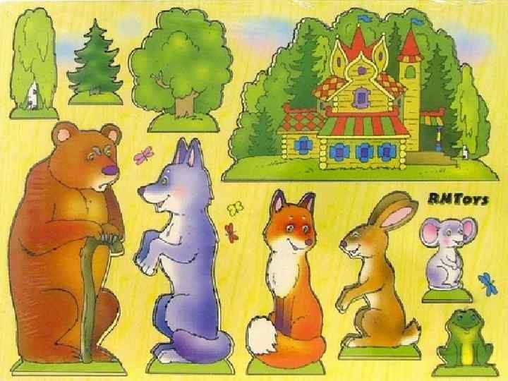 - Мишка-шкряботушка, жабка-скрекотушка, зайчик-побігайчик, лисичка-сестричка, вовчик-братик та кабан-іклан. А ти хто? - Гу-гу-гу! Як вас багато! А я ведмідь-набрідь. Пустіть і мене!
