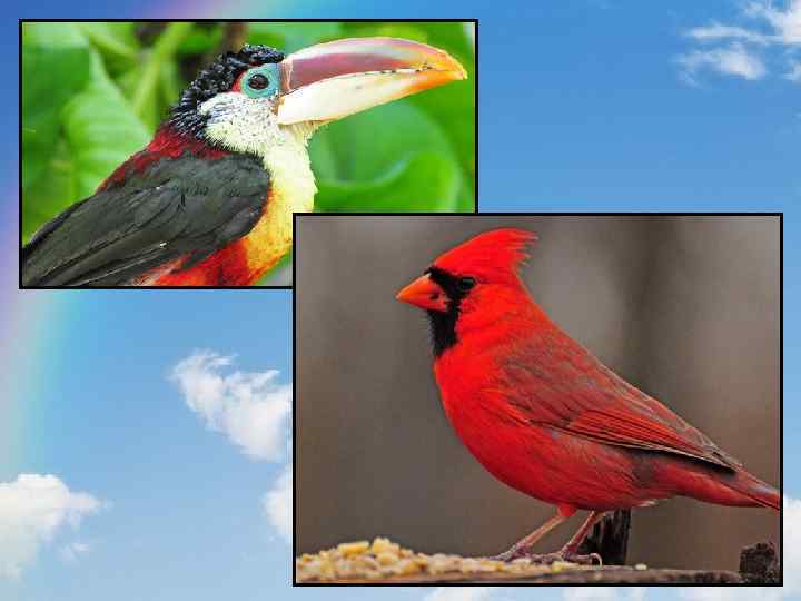 У них есть крылья, голова, Две лапки, клюв и перья. Все появляются с яйца. Слышны их песенки с деревьев.