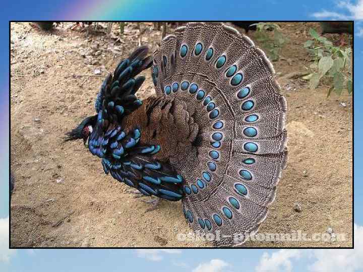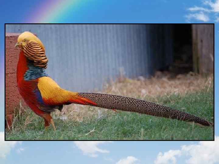Это что за чудо-птица? ! Не сова и не синица, Не журавль и не дрозд. . . Как раскрытый веер хвост. . . Голубой, зеленый, красный Сколько же на перьях красок? Точно важный господин, Ходит по двору
