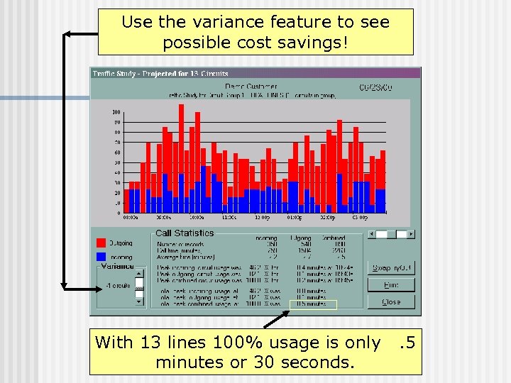 Use the variance feature to see possible cost savings! With 13 lines 100% usage is only minutes or 30 seconds. . 5