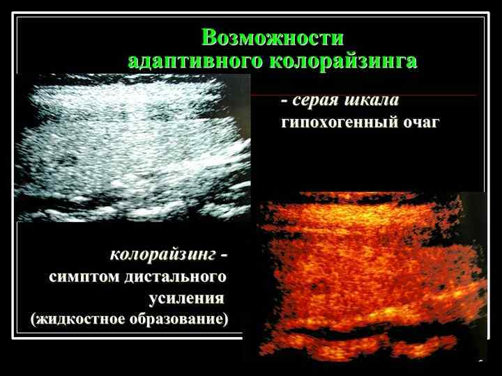 Оценка кровоснабжения n По количеству и ширине внутриорганных сосудов - нормальное - повышенное - гиперваскуляризация