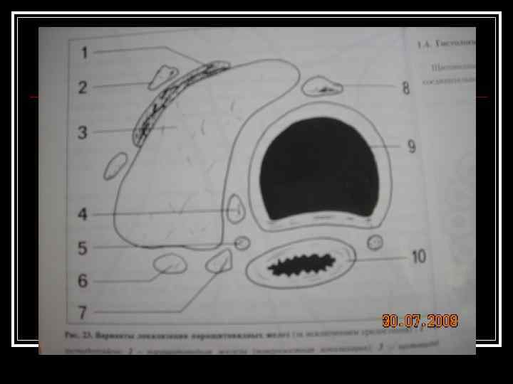 Нестандартные варианты анатомического строения и топографии неизмененной железы при сохранении N объема железы. Уплощенная, удлиненная форма продольный размер значительно превышает поперечный - характерна для молодых пациентов женского пола. n Шаровидная - уменьшается соотношение между продольным и поперечным размером по сравнению с «типичным» n