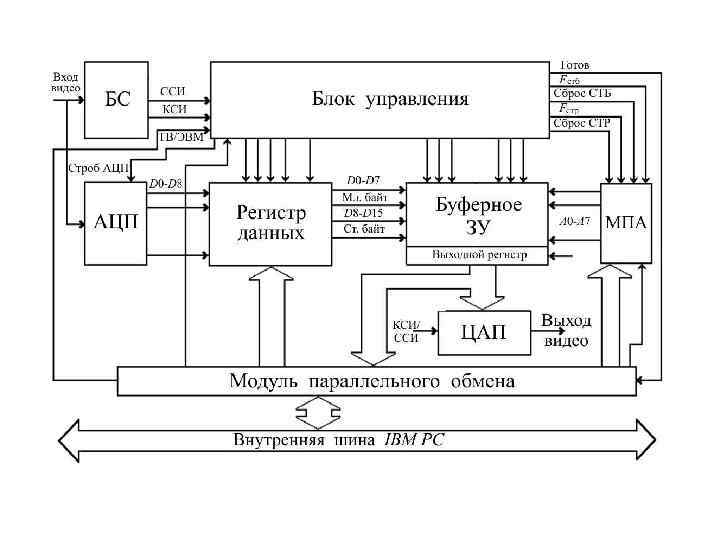 уровень синхроимпульсов = 0, уровень черного = 0, 33 В, уровень гасящего 0, 3 В, уровень белого = 1, 00 В. период строчной развёртки = 64 мкс, длительность прямого хода по строке = 52 мкс, длительность обратного хода по строке = 12 мкс, длительность кадрового гасящего – 25 строк.