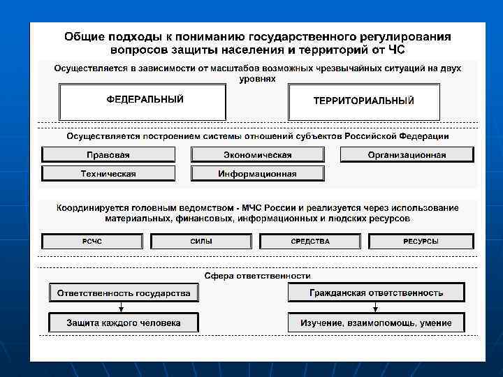 Основные понятия: n n Защита населения - комплекс взаимоувязанных по месту, времени, цели, ресурсам мероприятий по устранению или снижению на пострадавших территориях до приемлего уровня угрозы жизни и здоровью людей в случае реальной опасности возникновения или в условиях реализации опасных и вредных факторов стихийных бедствий техногенных аварий и катастроф. Защита территорий - комплекс организационных, экологических, инженерно-технических, природоохранных, специальных и иных мероприятий, направленных на предупреждение возникновения источников ЧС, подготовку к преодолению вызванных ими опасностей и ликвидации их последствий с целью снижения потерь и разрушений на объектах экономики и личного имущества граждан, а также на ограничение ущерба окружающей природной среде при ЧС.