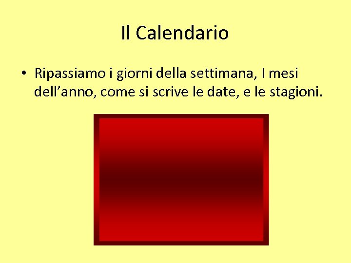 Il Calendario • Ripassiamo i giorni della settimana, I mesi dell’anno, come si scrive le date, e le stagioni.