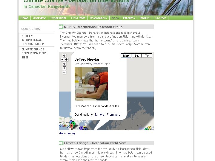 climate. biology. ualberta. ca 1) Communication portal – – 2) Questions about project Contact information, websites of individual researchers Internal use – Data/file storage and transfer