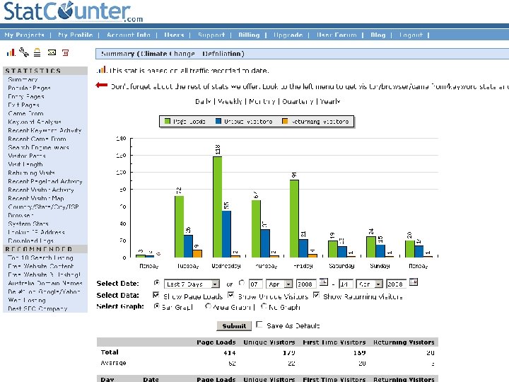 climate. biology. ualberta. ca Measuring effectiveness: 1) Active feedback – 2) Email Passive feedback – Stat. Counter. com